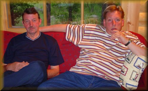 Väsyneenä yöllä sohvalla Heikki ja Tomppa