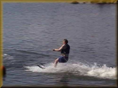 Tomppa vesisuksilla vesiskootterin perässä. Tyylikkäästi